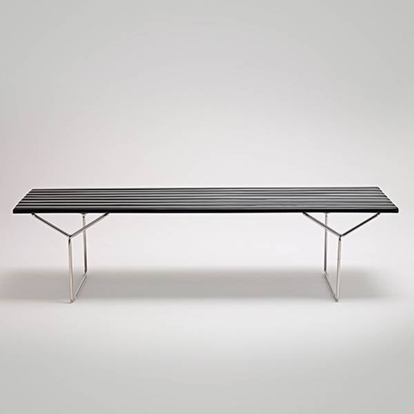 Um clássico, design moderno que realça qualquer ambiente. O Banco Bertoia apresenta ripas de madeira maciça ou pintadas. Sua base é fabricada em Aço Inoxidável.